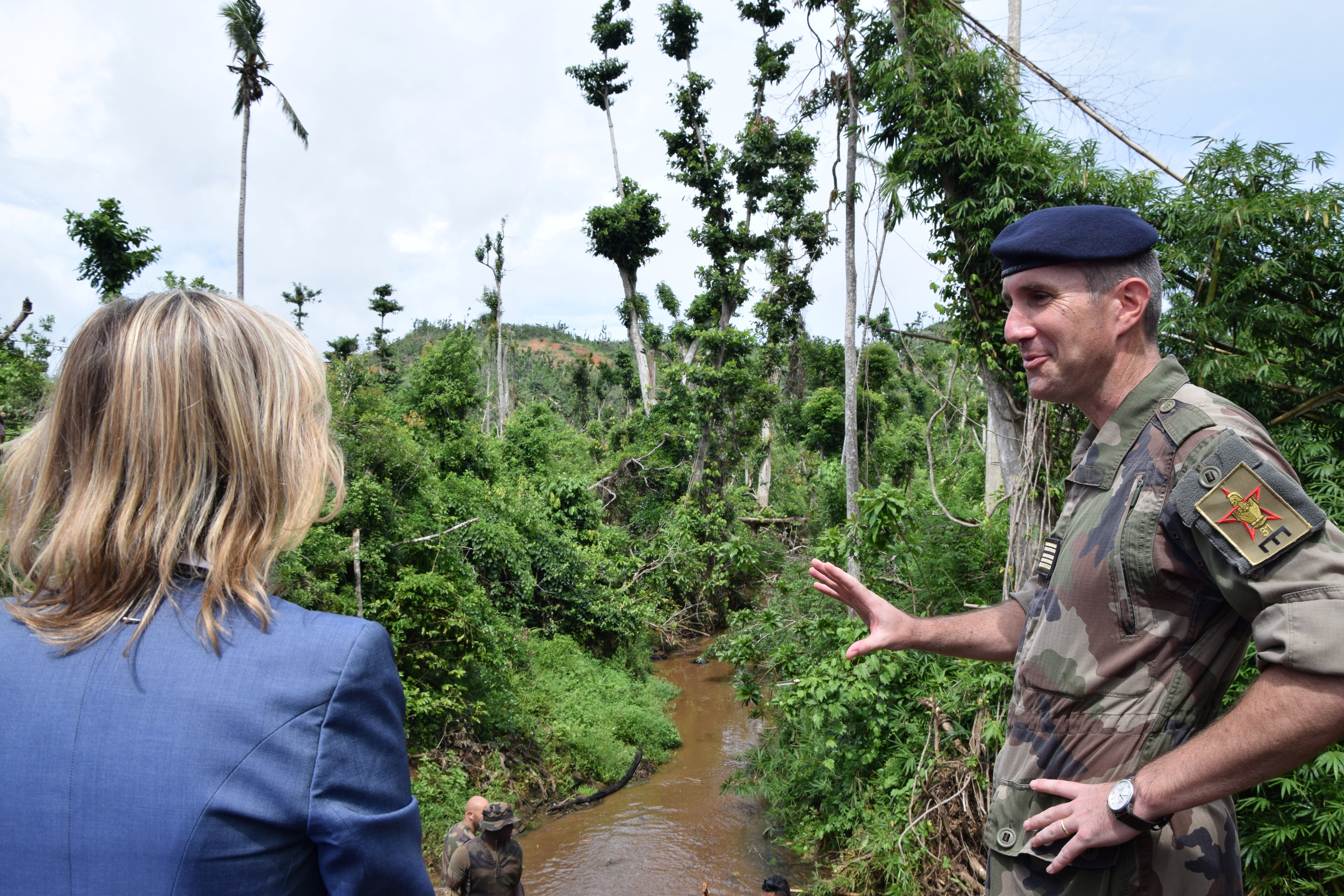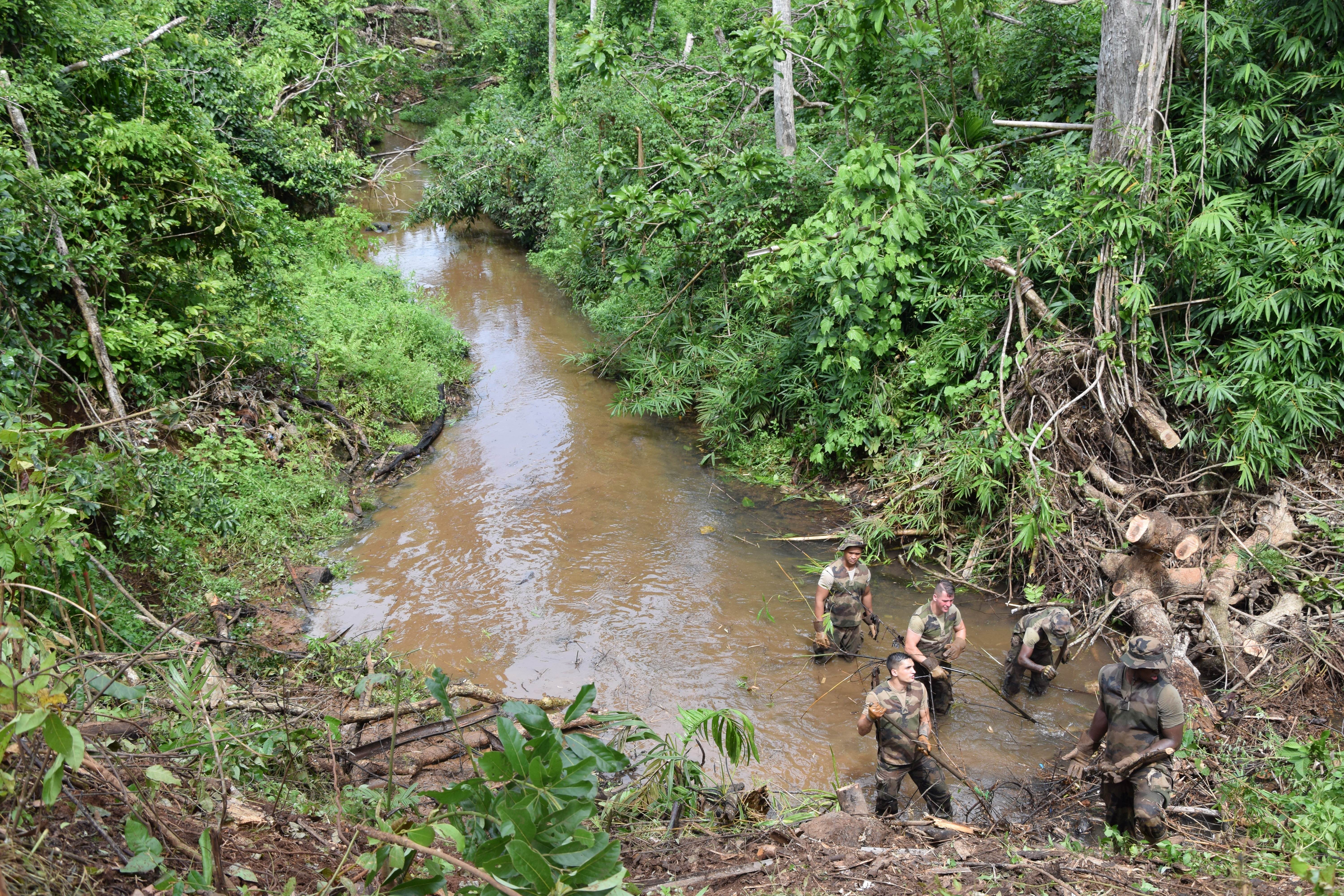 Je me demande alors combien de Mahorais sont présents dans le bataillon. On me présente une lieutenante chargée de la communication du groupe. Quelques échanges plus tard, me voilà à M’tsamboro, le 23 avril, pour suivre le chantier le long de la rivière.
